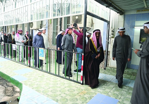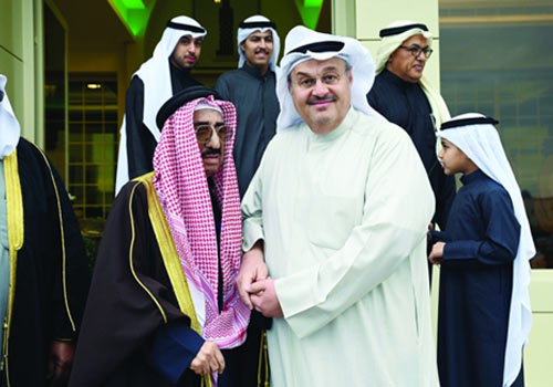 الوزير الوسمي ومحافظ مبارك الكبير الشيخ صباح بدر صباح السالم والحاج حسين علي القطان يتوسطون الحضور في لقطة جماعية